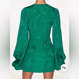 NWT chic and bold green dress with long sleeves. Features a deep V-neck and floral pattern. Ideal for stylish outings.