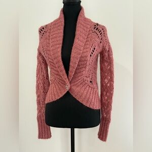 Ann Taylor Loft XS Elegant Wool Blend Knit Pink Cardigan Jewel Accent 875