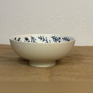 π€ White Ceramic Bowl with navy blue floral motif with a flat matte finish for a boho or cottage kitchen.