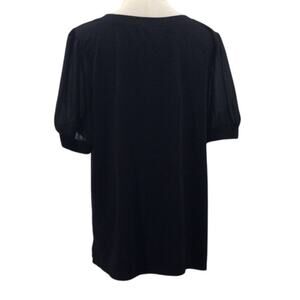 BLOOMCHIC 14-16 1X Plus Black Chiffon Patchwork Puff Sleeve T shirt NWT B88