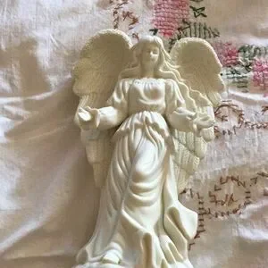 Beautiful white angel figurine with intricate details. Perfect for home decor or as a gift.