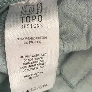 Topo Designs Dirt Pants in Women's Large. Color is sage. New without tags, never washed or worn.