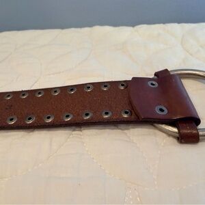 J. Crew Brown leather belt featuring a round silver buckle. Classic and versatile design. Women’s leather belt, size Medium. Looks great with jeans!