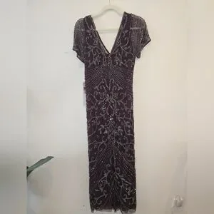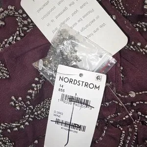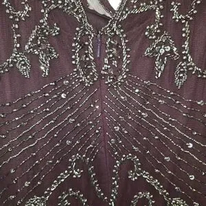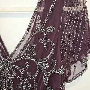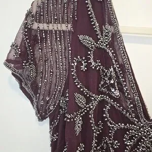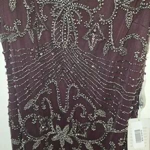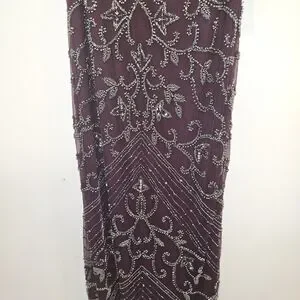 Stunning maroon dress with intricate beaded design. Perfect for formal occasions. It is beautiful. The entire dress has bead work, which makes it heavy. Originally $268 from Norstrom. Size 14, NWT and extra beads.