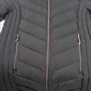 Stylish black hooded puffer jacket. Perfect for cold weather. New w/o tags!