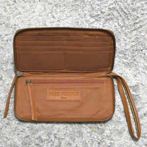 FREE PEOPLE Distressed Vegan Wallet, Brown, Slim Design, Wrist Strap Attached