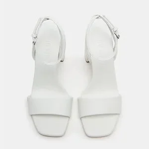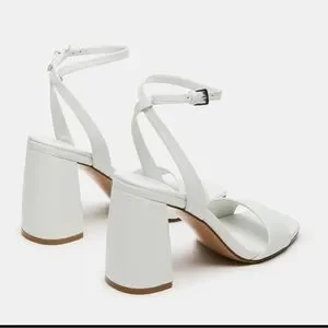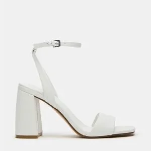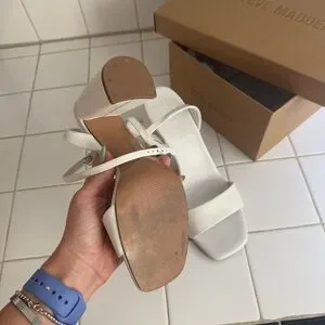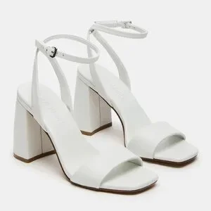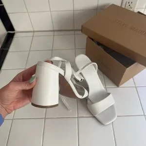 Steve Madden White Leather Messa Block Heel Ankle Strap Sandals