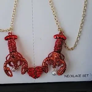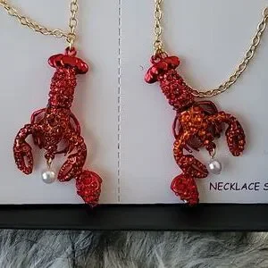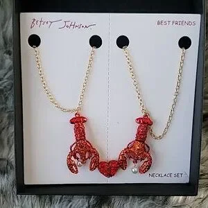 Betsey Johnson Gold and Red Lobster Best Friend Necklace Set