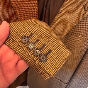 For sale: MINT condition Brioni, 100% cashmere sports coat. 3 roll / 2 style. Brown, gold and black/navy. Super soft. No one does cashmere like Brioni. Fully canvassed. No tears, holes, stains anywhere. Working surgeons cuffs. Worn very few times. Perfect for fall and winter. Good luck.