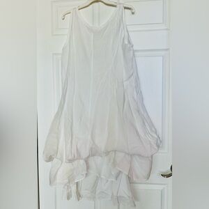 $400 NWT EILEEN FISHER White Handkerchief w/ Ties Linen Scoop Neck Dress XL