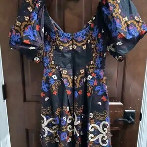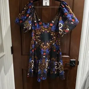 Chic mini dress with bold patterns. Features puff sleeves. Perfect for any event. Used- like new condition (worn once)