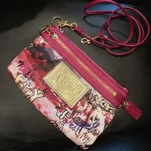Coach Pink Multi Color Graphic Clutch with Gold Accents - Like New