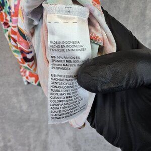 Pattern/Color: Multicolor floral print on a white base (reds, oranges, pinks, greens, purples)
