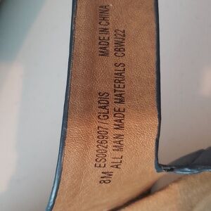 Stylish Euro Soft, Gladis, blue strappy sandals featuring a buckle design. The top strap is velcro, so it can be adjusted to your foot size. Perfect for casual wear.