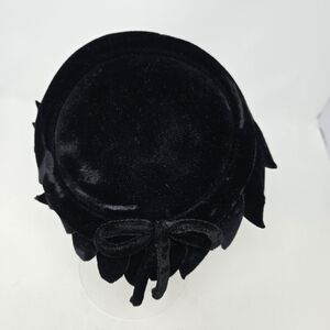 Vintage 1950s 1940s 1960s black velvet hat pillbox topper fascinator