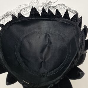 VINTAGE 1950S BLACK VELVET STRUCTURED HAT TOPPER VEIL BLACK TIE WOMEN OS COSTUME