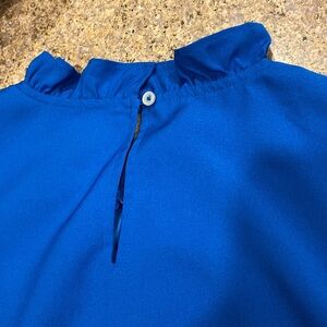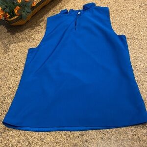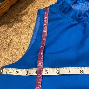 J.Crew Sleeveless Top Blouse XS Lined With FLAWS Blue. PLEASE NOTE-This has FLAWS- it has STAINS/Discolorations that I tried to show in the pictures but they may be difficult to see and I may have missed some. Please Also Note: I couldn’t get the color to appear correctly in pictures. I took photos in different lighting and beside other colors but still feel the color is off-at least on my monitor. The colors may be even more different or may be closer on your monitor. It’s a pretty blue but may be different than the colors the pictures show. I feel the color is similar to the blue dot that Posh shows for Blue-at least how it appears on my monitor-again it may look different on your monitor. This is in used condition with stains/discolorations and may have other imperfections. I’m pricing low and firm because of flaws. Cute ruffle look on neck! Measurements are rough approximate measurements.
