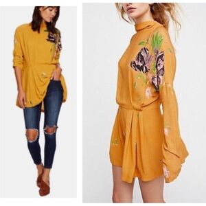 Free People Gemma Tunic Dress or Top Mustard Floral