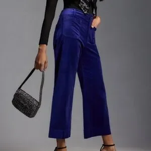 Anthropologie Maeve The Colette blue velvet cropped wide leg pants retro boho