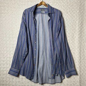 TD Thomas Dean Men's Button Down Purple Blue Striped Size XXL