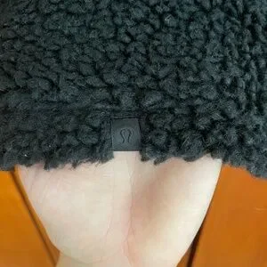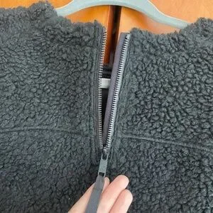 Super cute and cozy Lululemon sweater- the outside is Sherpa and the inside is lined and is not itchy at all. Has a pull zipper in the back to put it on and take off. Little hidden pocket on the inside of the sweater. Never worn!!