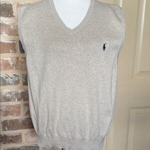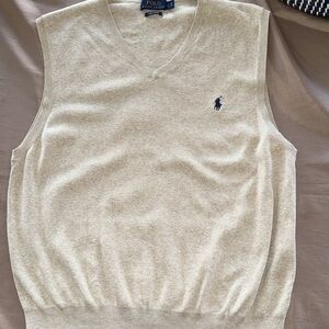 Polo Ralph Lauren Pima Cotton V-Neck Sweater Vest in Oatmeal Tan