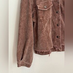 POL Corduroy Button Up Jacket Brown Raw Hem Western Fall Boho Style Women’s M