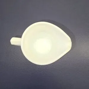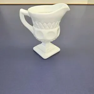 This Indiana Milk Glass Vintage Creamer is a charming addition to any antique collection. Made in the United States in the 1950s, this round creamer features a glossy white finish and a capacity of 8 oz. The Colonial style, with handles and an impressed backstamp, adds a touch of Americana to your dining table. This original piece from the Indiana Glass Colony line is a timeless piece that is sure to be a conversation starter at any meal.
