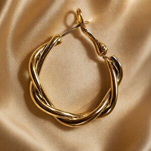Elevate your style with these Elegant Gold Twisted Wire Hoop Earrings. Featuring a polished gold-tone finish and unique twisted wire design, these hoops bring a modern yet classic touch to any outfit. Lightweight and comfortable for all-day wear, they’re the perfect staple accessory for casual looks, office outfits, or evening wear. Makes a thoughtful gift for her.