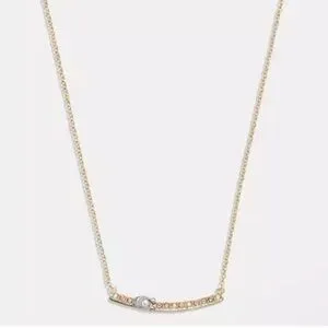 Elegant Coach necklace. Features gold chain. Silver and yellow accents. Perfect for any occasion.