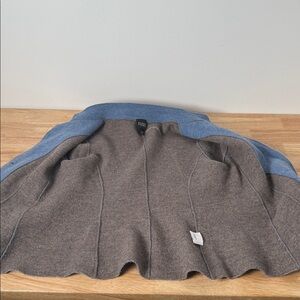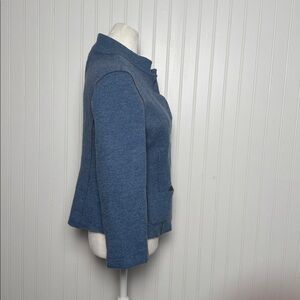 Beautiful Ellen Fisher wool blend blue button-up jacket with front pockets.