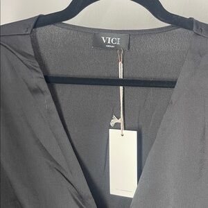 NWT VICI black satin like blouse