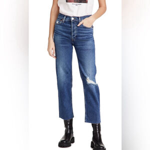 RE/DONE High Rise Straight Jeans Worn True Indigo Sz 28 EUC