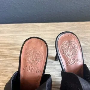 Vince Camuto Kayjay Black Leather Open-Toe Heels