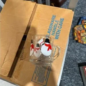 Charming glass mug featuring a snowman design with red accents. Perfect for winter beverages. Set of 12
