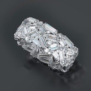 💎 Dainty Shiny Gems Irregular Zircon Silver EternityRing forWomen INDN8560