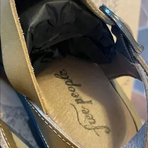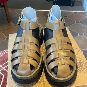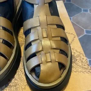 Stylish gold and black strappy leather sandals. Perfect for casual outings. Brand new; never worn with box. In superb condition.