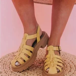 Gold and Black Strappy Delaney Fisherman Platfor Sandals