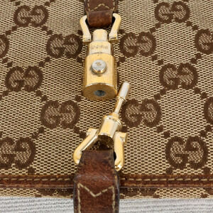 Gucci Wallet Clutch Womens Beige Brown Canvas Leather Trim Lined Pin Latch
