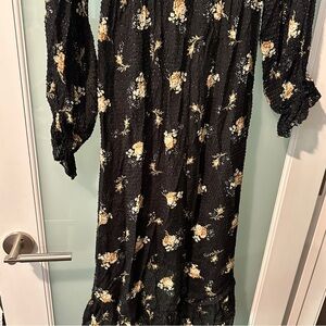 Maje Rider Midi Print on Black Floral Textured Dress Euro Size 36