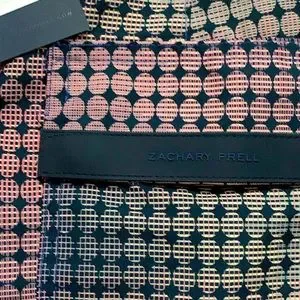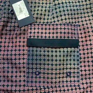 Hit the beach or a pool party in these Zachary Prell Arroyo Circle Print Swim Trunks. Mod circles in sleek ombre hues pattern fixed-waist, equipped with mesh lining, sleek pockets and water-draining grommets on back waist & pocket. Crafted from sleek fabric with quick-dry, moisture wicking technology. Back pocket snaps closes with silicone logo plate. NWT