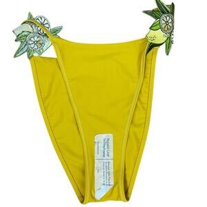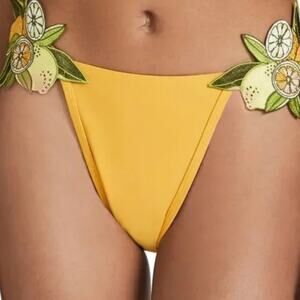 New Andrea Iyamah X Revolve Mona Embroidered Mustard Yellow Lemon Bikini Bottom
