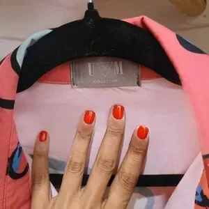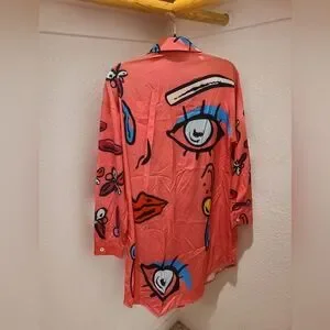 Vibrant pink shirt dress. Bold graphic design. Eye-catching and unique.
