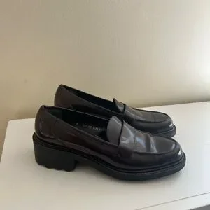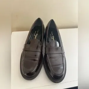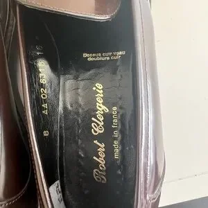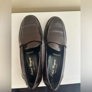 Dark brown patent leather loafers by Robert Clergerie. Sleek design for a sophisticated look. Worn one time.