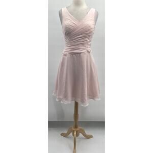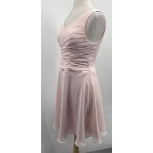 JJs House Chiffon Mini Dress Fit & Flare Pleated Bodice Vneck Blush Pink NEW 8