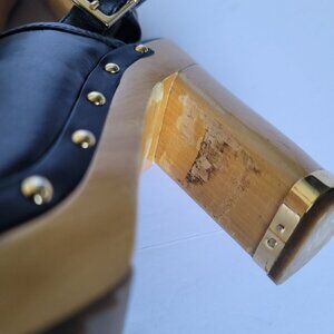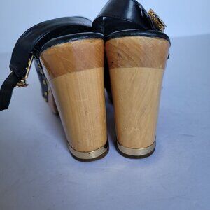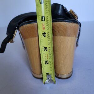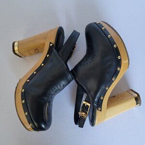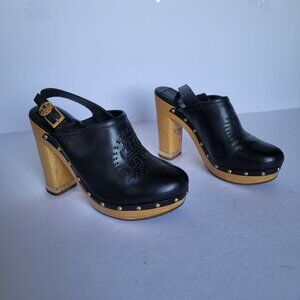 Tory Burch Brayden Perforated Leather Logo Slingback Wood Clogs. Size 7.5M