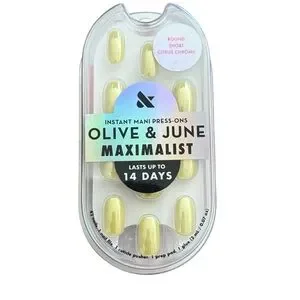 Olive & June Instant Mani Press-On Nails Round Short Citrus Chrome Yellow NWT