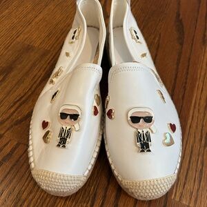 Karl Lagerfeld Michaela White Round Toe Slip-On Espadrilles | size 11