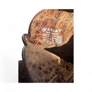 Stylish Ariat Dahlia boots. These boots are made for dancing. Tuck your jeans into the full grain leather 9 upper to generate a little boot envy. Stylish D-toe flaunts beautiful floral embossed leather. Durable and comfortable. Heel 2 1/4”, Shaft height 9”, Shaft Circumference 13 1/2”.