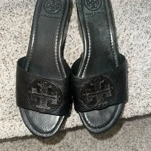 Tory Burch Embossed Black Leather Clogs